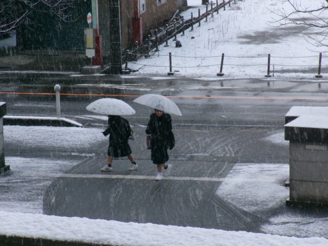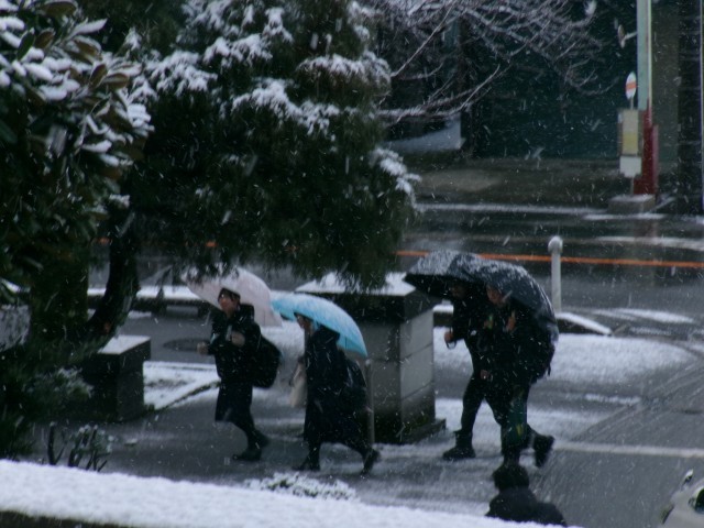 雪の降り方が激しくなる時間がある中、生徒が登校してきました。