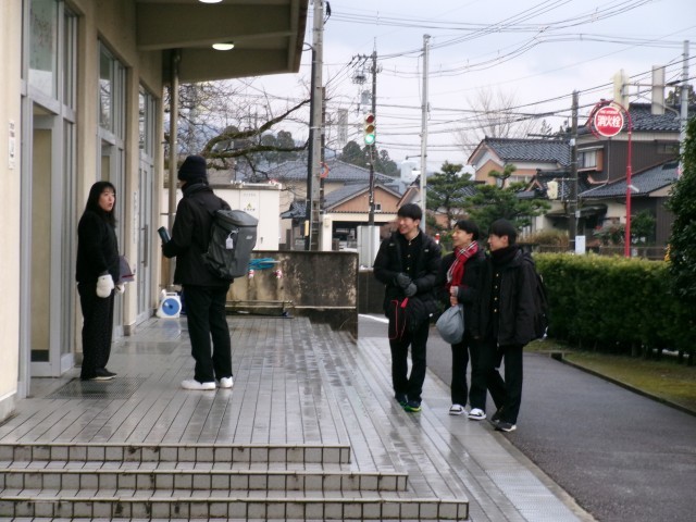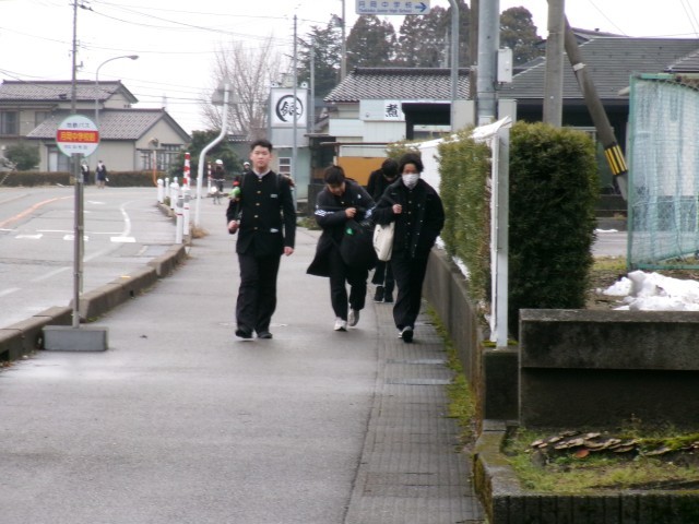 登校の様子です。いくぶん気温が高めなのと、足元もよいので自転車通学の生徒もいました。