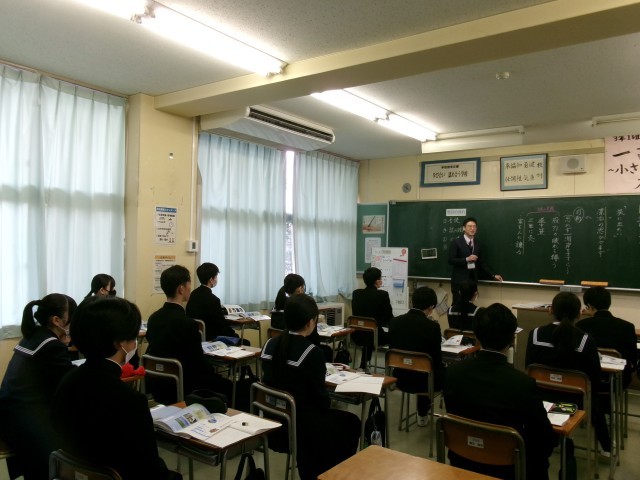 国語の授業の様子です。松尾芭蕉の詠んだ句やその背景等、自分が聴いていて「そうだったのか」と認識したところがあり古典の奥深さに触れることができました。(中学生の頃は、どう思っていたかは忘れましたが)