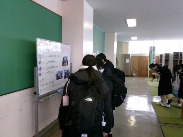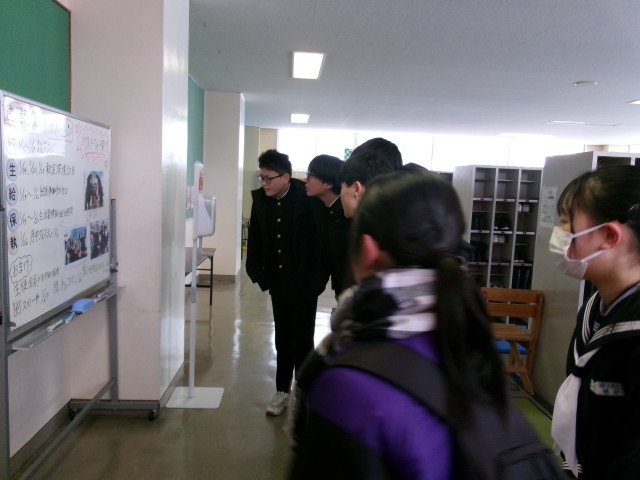 昨日の月中フェスティバル ベストフォトの前に、登校してきた生徒が集まって見ていました。生徒会執行部のみなさん、全校生徒の笑顔あふれるよい企画をありがとうございました!