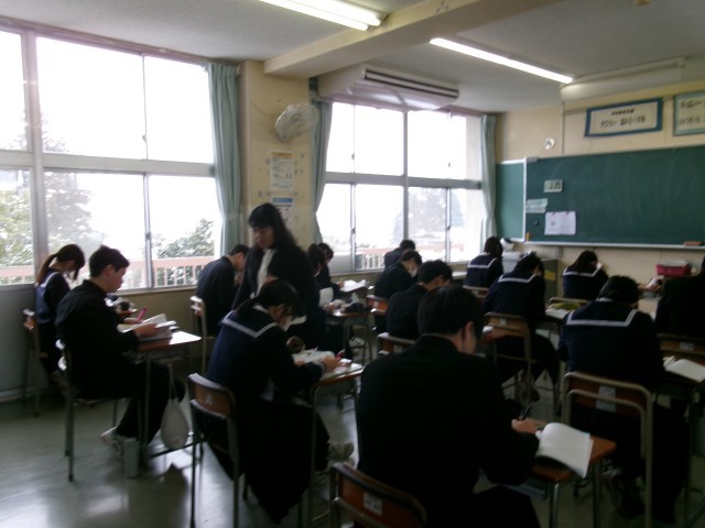 英語の授業の様子です。じっくり英語小説を読みたいときは、単語の意味を調べながら読むとよいと思いますが、英語の問題を解くときは、英語の長文を速く読むようにアドバイスがありました。ひとつの単語に引っかかるのではなく、とりあえず「読む」、大体の内容をつかむことが大事です。