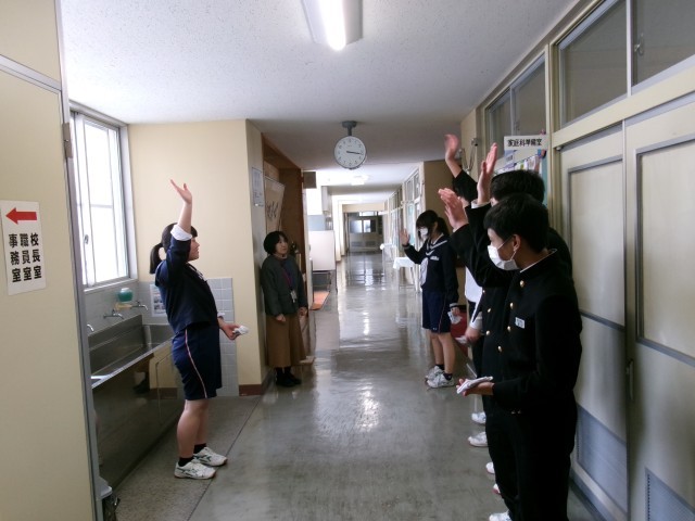 今日も丁寧な清掃をしていました。反省会も、みんな揃ってできています。