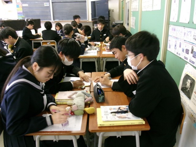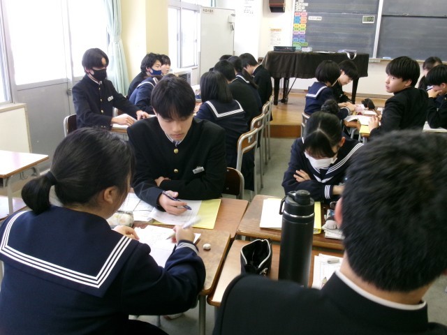 音楽の授業の様子です。音符の読み方や、伸ばす数についてまとめていました。音符の「符」と付点音符の「付」、漢字の違いにも気を付けようと話している声がしました。