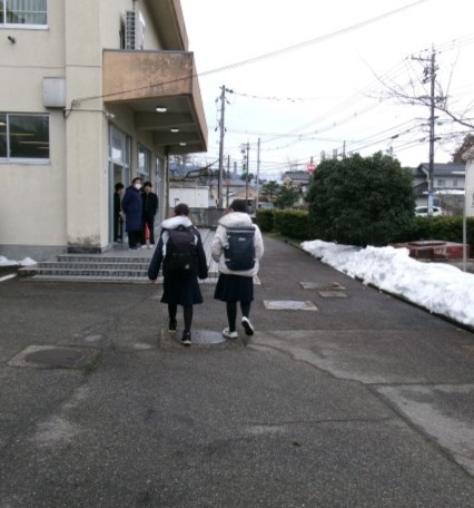 登校の様子です。先週末は4月並みの暖かさでしたが、今日の予想最高気温は7℃、防寒具が必要です。