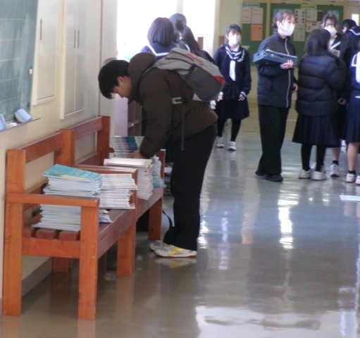 考査後、ワーク類を提出している様子です。みんなの頑張りが詰まったワークです。