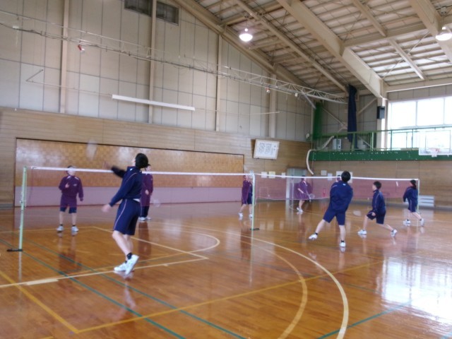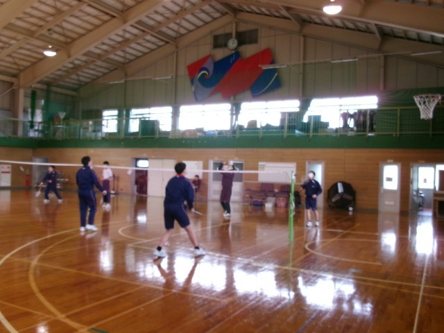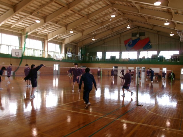 保健体育 バドミントンの授業の様子です。3年生にとって、特に3学期の保健体育の授業は体と心をほぐすよい時間になっているようです。笑顔でシャトルを打っていました。