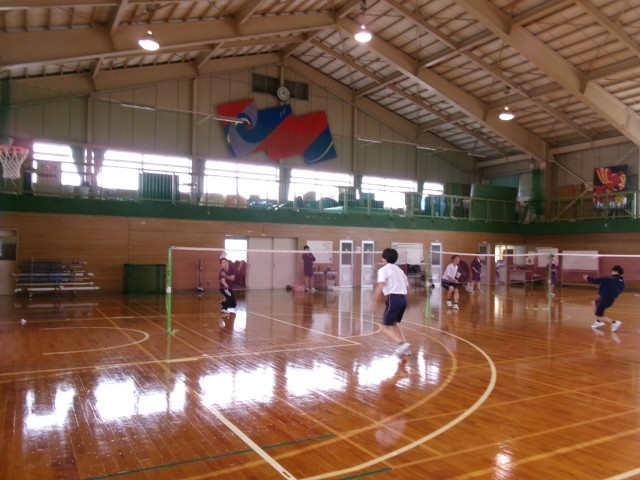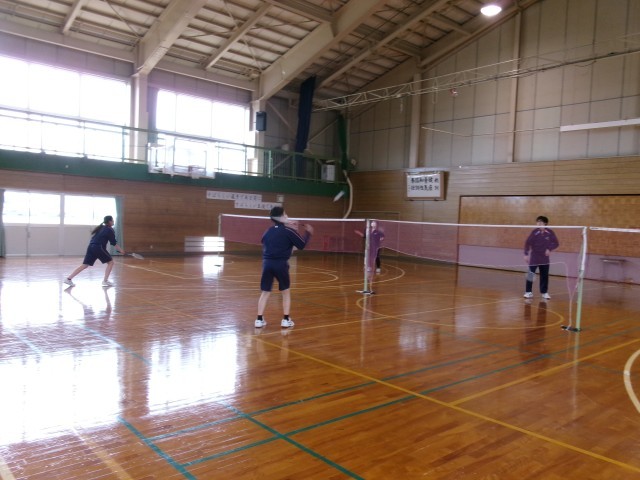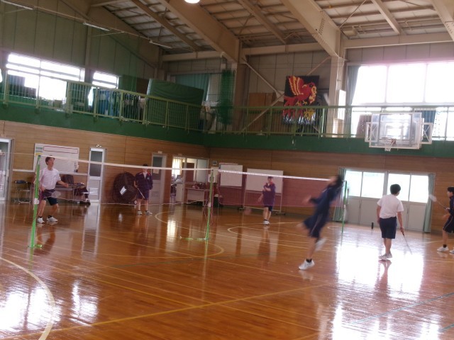 保健体育 バドミントンの授業の様子です。ゲーム形式で対戦していました。「先生もどうですか」と声を掛けてくれた生徒がいました。珍しく今日はスカートだったので、残念ながら断りましたが、誘ってくれてありがとう!