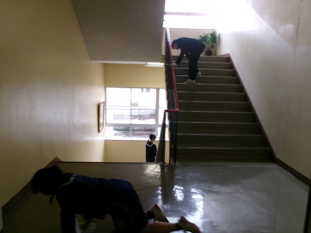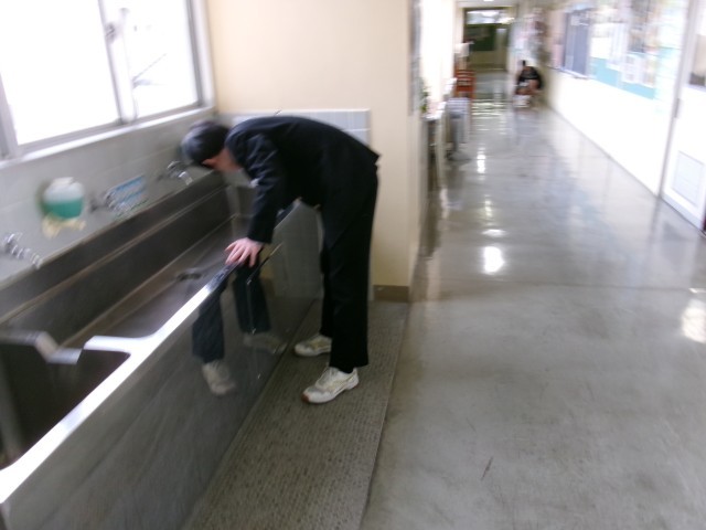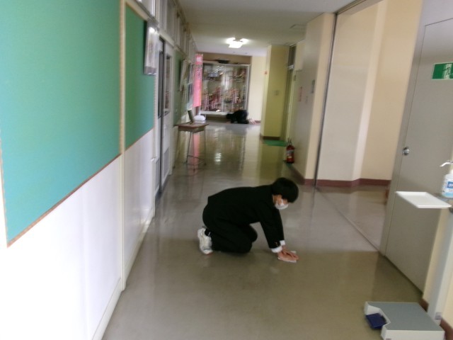 職員室前付近の清掃の様子です。今日も丁寧に行っています。