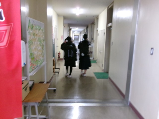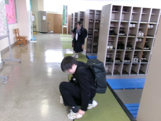 生徒が登校し、それぞれの教室に向かう様子です。1・2年生は、1限 合同合唱練習を行います。