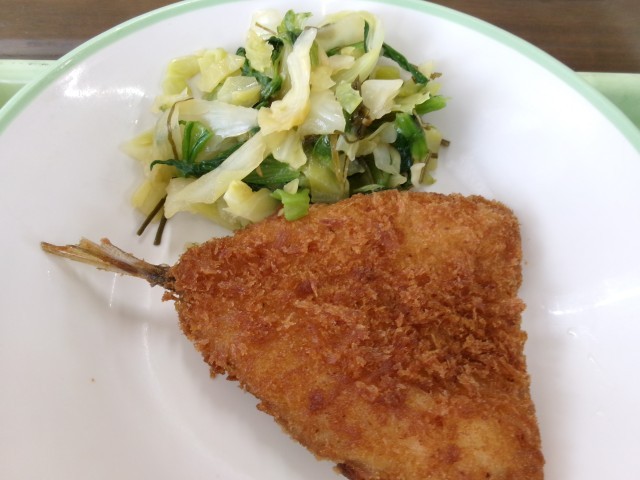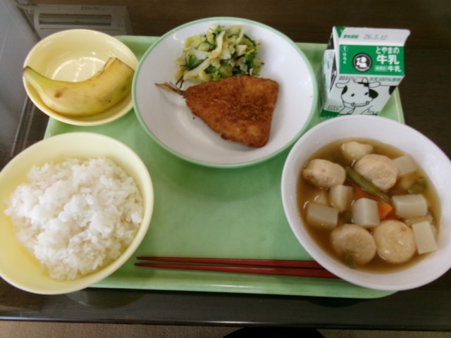 あじフライは、どうしてこんなにおいしいのでしょう!と思う一品であります。「あじフライ専門店」もあるほどですから。そのままでもよいし、ソースやタルタルソースでもよく、いろんなバリエーションが楽しめるフライですね。昆布好きな私にとって、昆布和えも最高でした。 3年生は、今日のお昼は何を食べるのかなあと思いながら、今日もおいしくいただきました。