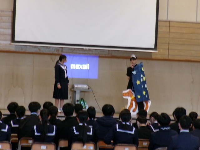 卒業生を送る会の様子です。執行部の寸劇で、スタートしました。