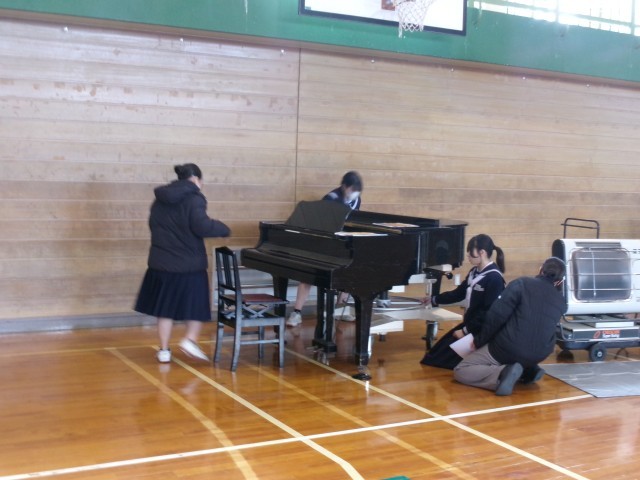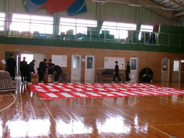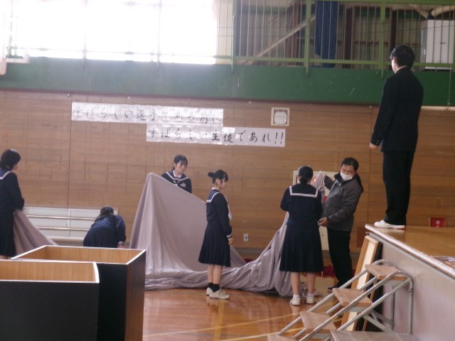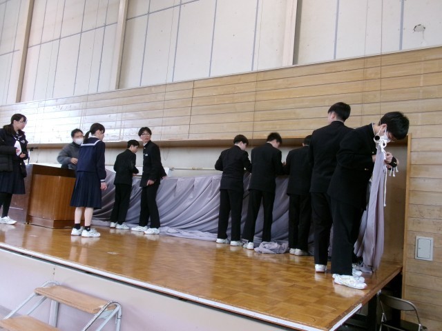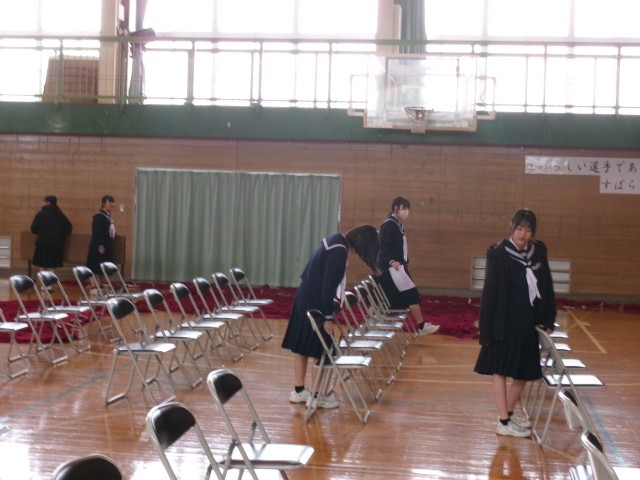 6限 2年生が体育館の準備をしました。各自の役割に従い、昨年の写真を見ながら動いていました。頼もしいです。