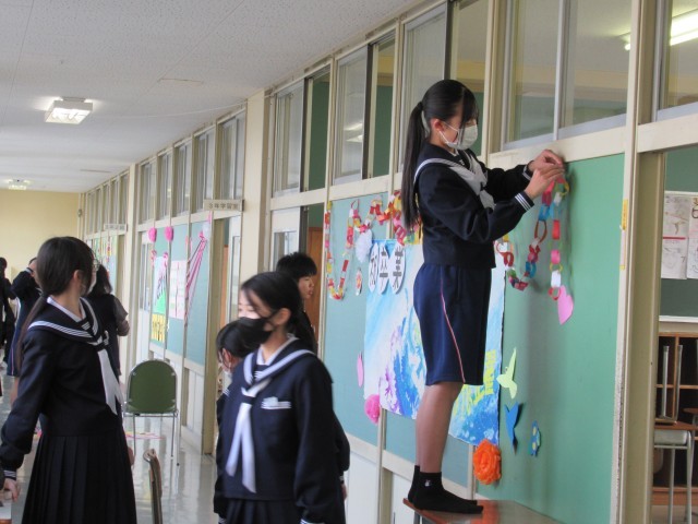 3年生の教室や廊下も飾り付けました。3年生に喜んでもらえるよう、心を込めて作業をしていました。