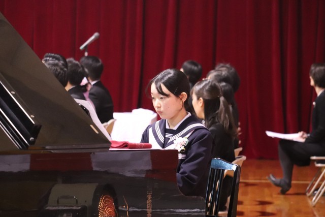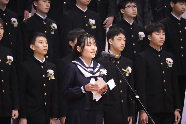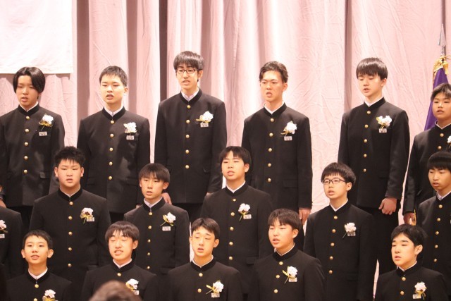 卒業生代表による「旅立ちの言葉」と、卒業生全員合唱の様子です。卒業生の合唱も、圧巻でした。この歌詞に、この曲に、旅立つ思いを込めて歌う姿、また仲間との最後の合唱に仲間との絆を感じながら歌う姿に感動しました。立派な姿でした。