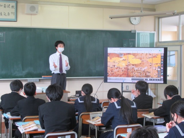 1年生は学活で学級目標決め、2年生は社会で安土・桃山時代の文化、