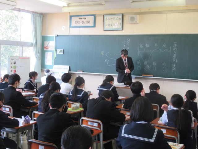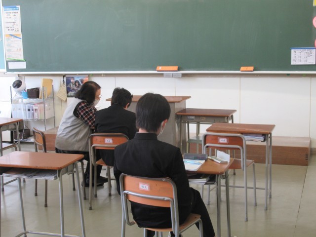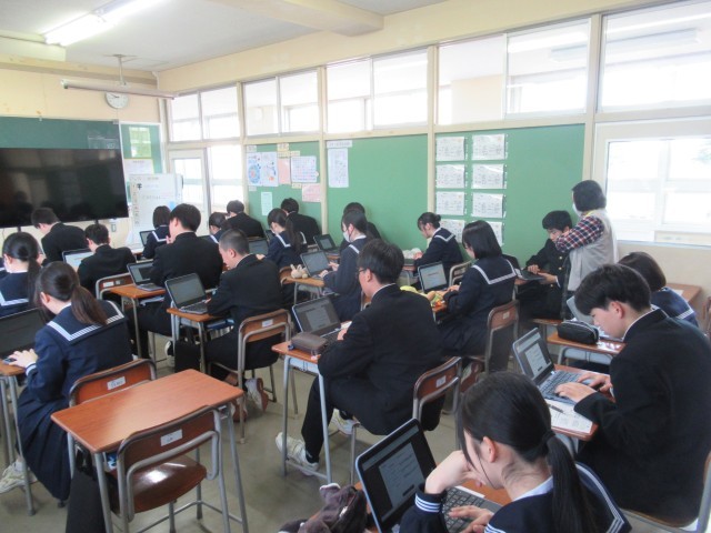 2年1組は国語で2つの詩の比較、3年1組は全国学力・学習状況調査で英語の問題、