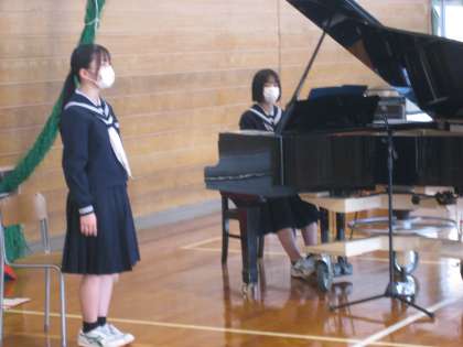 入学式予行練習 公開日 2022/04/07 更新日 2022/04/07 その他 4月7日(木) 4限 2,3年生で入学式の予行練習を行いました。歓迎の合唱について、最高の歌になるようリーダーを中心に声を掛け合っています。新1年生のみなさん、月中みんなでお待ちしています!