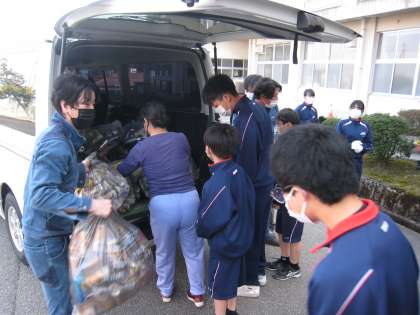 アルミ缶回収ボランティア 公開日 2022/04/10 更新日 2022/04/10 その他 4月10日(日) 8:30 本日、育友会(PTA)主催の資源回収を行いました。月中では、元図書委員会生徒を中心にアルミ缶回収をしました。アルミ缶回収で得た収益は、アルミ缶文庫として図書室の新書購入に活用させていただきます。育友会保護者の皆様、地域の皆様、本当にご協力ありがとうございました。