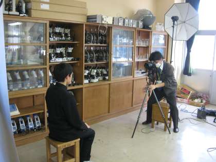4月11日(月) 5,6限 全学年の生徒が順番に顔写真撮影をしています。みんな中学生らしい、さわやかな表情をしています!