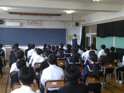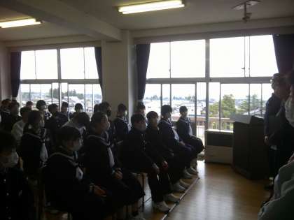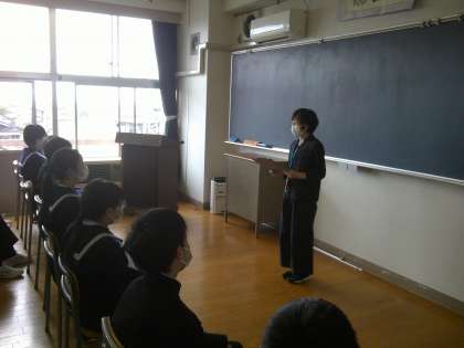 4月13日(水) 5限 初めて1年生が学年集会を行いました。学年の先生の紹介や保健室の利用などについての話がありました。