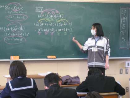 3年生の授業 3−2数学 公開日 2022/04/18 更新日 2022/04/18 学び合い認め合う学習 4月18日(月) 6限 数学の授業風景です。多項式について学習しています。途中積極的に発言する生徒もいて、さすが3年生!