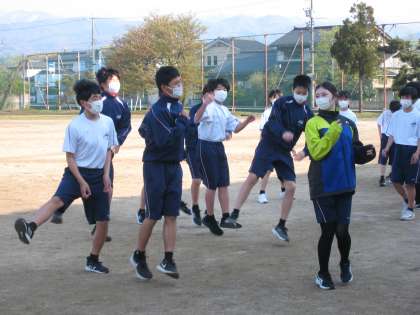 部活動の様子 その2 公開日 2022/04/19 更新日 2022/04/19 部活動 4月19日(火) 放課後 1年生の部員もだんだん練習についていけるようになってきました。ファイト!月中生!!(上:野球部、下:陸上競技部)