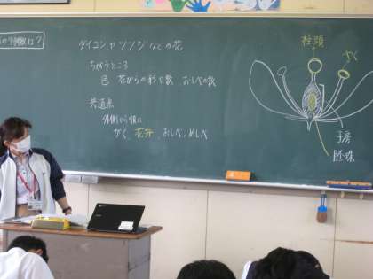 植物のつくり 1−2理科 公開日 2022/05/10 更新日 2022/05/10 学び合い認め合う学習 5月10日(火) 2限 植物のつくりについて学習しています。普段何気なく見ている花も、いろいろな器官でできているのですね。