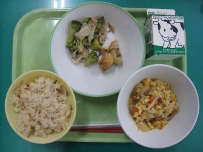 今日の給食 公開日 2022/05/10 更新日 2022/05/10 その他 5月10日(火) 今日の給食メニューは、 ・五目ごはん ・牛乳 ・ほたての香味焼き ・ブロッコリーとエリンギのソテー ・油麩の卵とじ です。 五目ごはんは椎茸などのうまみが染みており、おいしかったです。