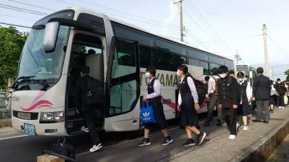 修学旅行 ーいよいよ出発 1組ー 公開日 2022/05/12 更新日 2022/05/12 学び合い認め合う学習 荷物をバスのトランクに入れ、いよいよバスに乗車しました。みんな笑顔でいっぱいです。「行ってきます!」