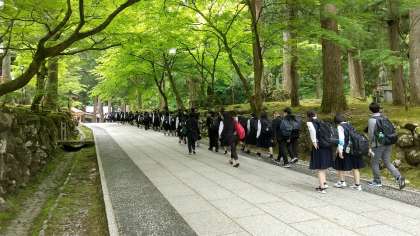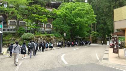 修学旅行 ー永平寺に到着しましたー 公開日 2022/05/12 更新日 2022/05/12 学び合い認め合う学習 永平寺の駐車場に到着し、参道を歩いています。緑がとってもきれいで、心が洗われるようです。