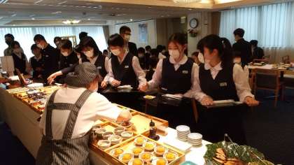 修学旅行 ー朝食ー 公開日 2022/05/13 更新日 2022/05/13 学び合い認め合う学習 「おはようございます!」 全員が元気に朝を迎えました。 予定通り、6時からバイキング形式で朝食を食べました。豊富なメニューに おもてなしの心 を感じました。いっぱい食べてエネルギー補給、今日も笑顔いっぱいで頑張ります!