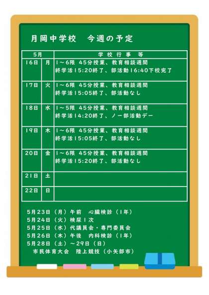 5月16日(月)〜5月22日(日)の予定です。