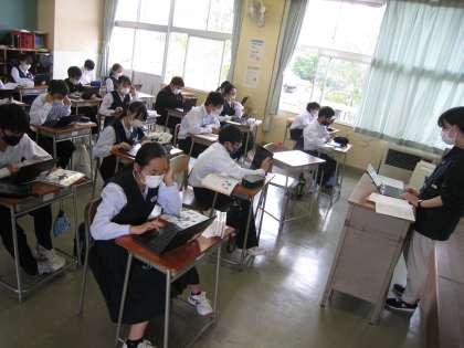 「自分と向き合うこと」をテーマにした道徳の授業です。各自パソコンを使って意見を交流させています。おかげで正直な気持ちが伝えやすいです。