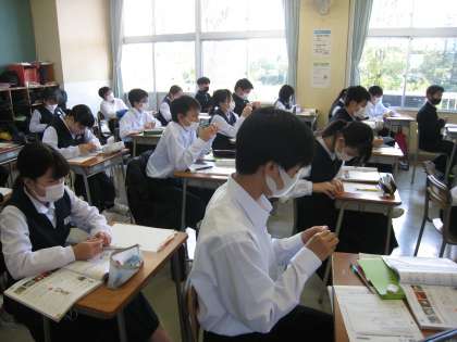 技術の授業風景です。「金属の特徴」を学ぶために、各自クリップを真っ直ぐにしています。結構難しそう・・・。