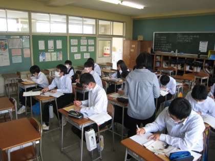 少人数教室 2−1英語 公開日 2022/05/26 更新日 2022/05/26 学び合い認め合う学習 5月26日(木) 2限 少人数教室に分かれて英語の授業をしています。アットホームな雰囲気で英語に親しんでいます!