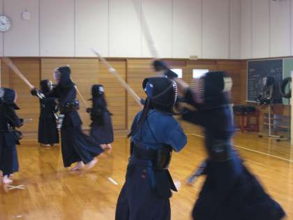 写真は剣道部の稽古の様子です。お互いに竹刀で打ち込みをしています。今月17日(金)から行われる市総合選手権大会に向けてがんばりましょう!月中ファイト!!