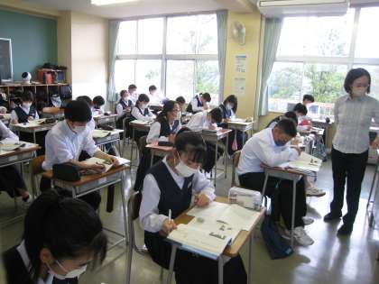 国語の授業風景です。説明文についての学習をしています。「ルビンの壺」とは目の錯覚であったのか・・・。