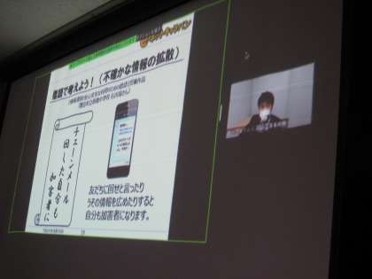 情報モラル講座 2学年 公開日 2022/06/07 更新日 2022/06/07 学び合い認め合う学習 6月7日(火) 6限 ケーブルテレビ富山の方をリモートで講師にお招きし、情報モラルについてお話を頂きました。SNS等は正しく使用しましょう。