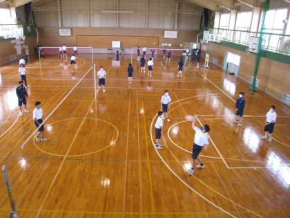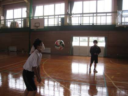バレーボールの試合 2−1体育 公開日 2022/06/08 更新日 2022/06/08 学び合い認め合う学習 6月8日(水) 2限 体育の授業風景です。バレーボールの試合をしています。ワンバウンド有りの特別ルールなので、ボールがつながっています!