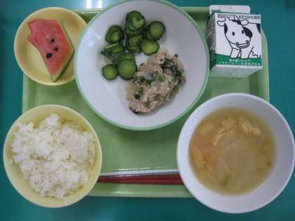 今日の給食 公開日 2022/06/16 更新日 2022/06/16 その他 6月16日(木) 今日の給食メニューは、 ・ごはん ・牛乳 ・豚肉の塩こうじ炒め ・きゅうりもみ ・みそ汁 ・すいか です。 一足早くすいかが出ました。甘くてとてもおいしかったです。