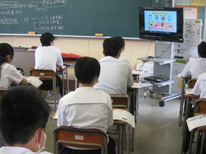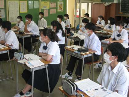 3−2保健体育の授業風景です。生活から出た廃棄物の再利用の仕方等(3R)について学習しています。家庭科にも関連する学習です。循環型社会を目指しましょう。
