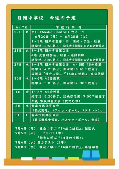 今週から期末考査が始まり、いよいよ1学期の学習のまとめの時期を