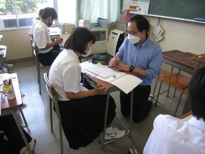 1−1数学の授業風景です。先日行われた期末テストが返されて、各自で間違えたところ見直しをしています。分からないことは遠慮なく先生に質問しよう!