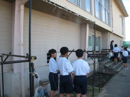 熱中症対策を徹底しながら 公開日 2022/06/30 更新日 2022/06/30 部活動 6月30日(木) 放課後 熱中症対策(10分ごとの休憩や水分補給、冷凍ペットボトルの使用等)を徹底しながら、今週から始まる市民体育大会に向けて各部が頑張っています!ファイト!月中生!! (写真上:ミストシャワーを使用する陸上競技部 中:明日から大会の野球部 下:体育館のバスケットボール部、バドミントン部)