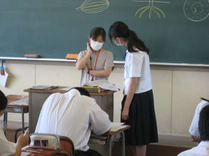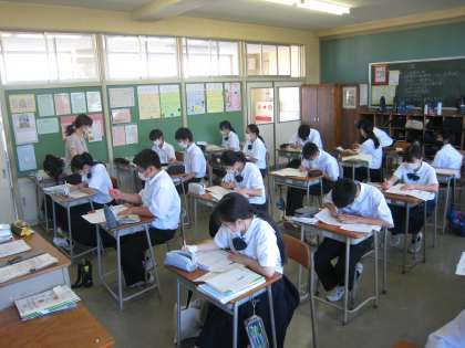 1−2理科の授業風景です。先日行われた期末テストが生徒に返され、見直しをしています。間違えたところは今しっかりと解き直して覚えましょう!