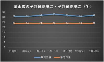 気象庁によると、今後1週間は最高気温が30度を超える真夏日が続