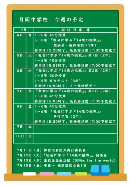 2年生は「社会に学ぶ『14歳の挑戦』」ウィークとなります。