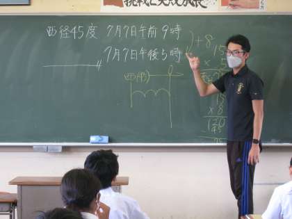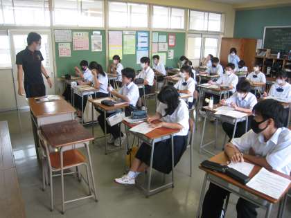 1−1社会の授業風景です。以前行われた期末考査の問題を解き直しています。テストは終わった後が大事です。しっかり覚えていきましょう。