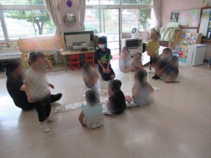 目線を落として、園児と触れ合う姿は、保育園ならではです!