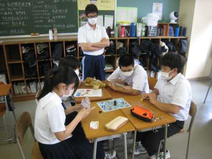 全校でSDGs学習 その2 公開日 2022/07/13 更新日 2022/07/13 その他 7月13日(水) 5限 総合 今週は「SDGs週間」です。よりよい世界をつくるために、今私たちができることを考えていきます。クイズ形式のスゴロクでは、SDGsについてより深く理解することができました。企画してくれた生徒会のみなさん、どうもありがとうございました。 (写真上:3−2 中:3−1 下:2−1)